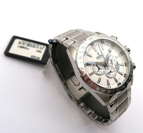 Fabriksnyt Festina chronograph herrearmbåndsur, ref. nr. F1688/1 i urkasse og med lænke af stål. Lys, metalgrå skive med central og separat sekundviser, stregindikation, datovisning i #4½ positionen samt chronograph funktioner. Quartzværk. Urkasse diameter 44 mm.