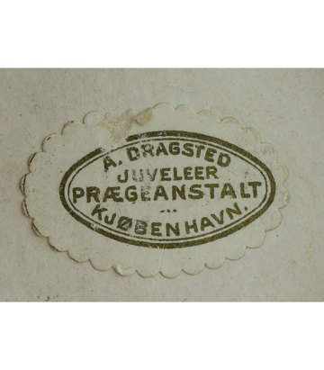I æske med indskrift "A. Dragsted juveller prægeanstalt Kjøbenhavn" inde i låget.