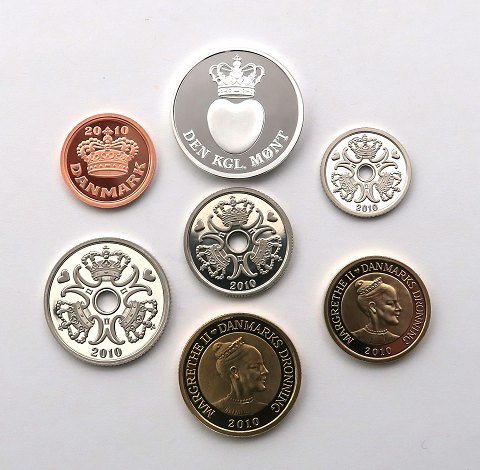 I original æske der indeholder 50 øre samt 1, 2, 5, 10 og 20 kr fra 2010. Desuden indeholder æsken en original en kopi af en medalje af sterlingsølv udgivet af Christian VI i 1739 i forbindelse m. den højtidelige indvielse af flådens første tørdok.