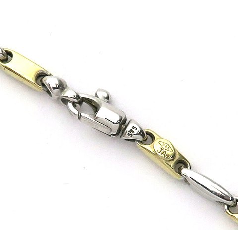 Collier af 14 k. guld og hvidguld med ovale, blokformede led. L. 45 cm., vægt ca. 12 gr.