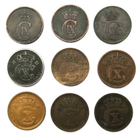 Lot bestående af 5 øre 2x 1904, 1906, 2x 1916, 1918, 2x 1919 bronze og 1921. 1906 let korroderet. 1921 pænt eksemplar.