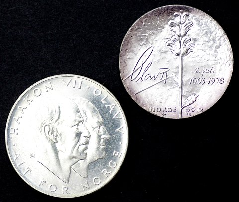 25 kr. 1970 *25 års Frigjøringen* og 50 kr. 1978 Kong Olav V, 75 års fødselsdag.
