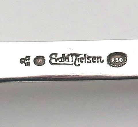 Evald Nielsen potageske nr. 3 af sølv, skaft prydet med magnolie. L. 27 cm., vægt ca. 145 gr.