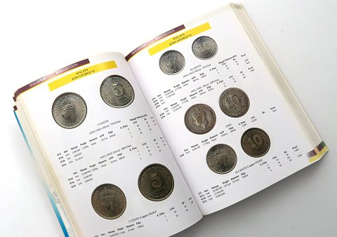 Udførligt katalog med 437 sider med farveillustrationer, beskrivelser og vurderingspriser for sedler og mønter fra Malaysia, Brunei og Singapore.