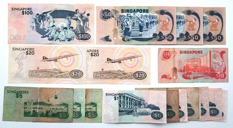 Singapore, Fugle-serie, ND (1976-80) 8x1 Dollar, 3x5 Dollar, 10 Dollar, 2x20 Dollar, 3x50 Dollar og 100 Dollar(18)