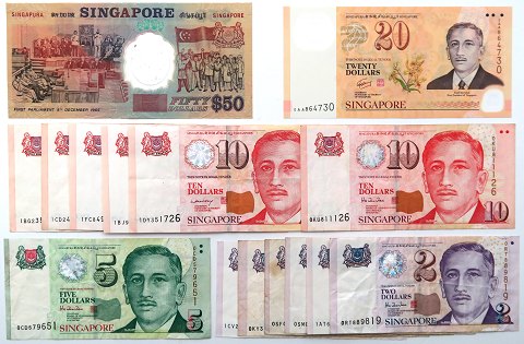 Singapore, Portræt-serie, 6x2 Dollar, 1x5 Dollar, 6x10 Dollar, 1x20 Dollar og 1x50 Dollar (15)