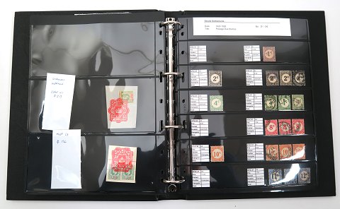 Leuchtturm album i kassette med 42 sider annullerede Cent og Dollar frimærker med kataloghenvisninger, priser og kvalitetsoplysninger.