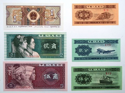 Sæt bestående af 5 Yuan 1989 og 2000, 2 Yuan 1990, 1 Yuan 2007 og 2009 samt seddel på 5 Yuan, 2 Yuan og 1 Yuan 2010 samt tre yderlige sedler - ucirkuleret. Blisterpakket i farverig mappe med omslag.