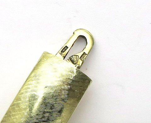 Armring af 14 kt. guld, med struktureret og profileret overflade. Indvendig 62 x 54 mm., vægt ca. 26 gr.