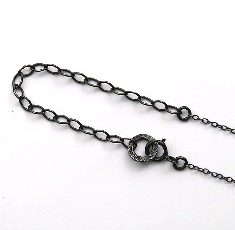Halssmyke af oxideret sterling sølv, prydet med tre klare, facetslebne sten. Kæde L. ca. 44 cm., samlet vægt ca. 3 gr. PCO design.