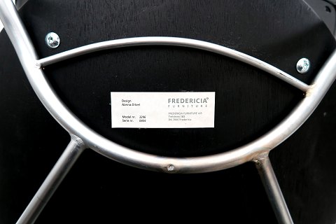 Nanna Ditzel stol med polstret sæde model 3296, serie 0404 af sortbejdset ask med matforkromet stel. H. 83cm., B. 48,5 cm., Sæde H 45 cm. Fredericia Furniture. NYPRIS: Kr. 4.149.-