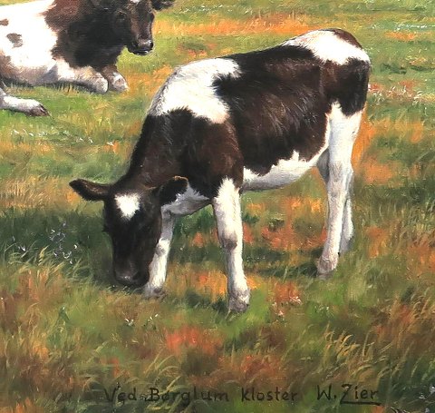 Wolmer Zier (1910 - 1990) Køer på en mark ved Børglum Kloster