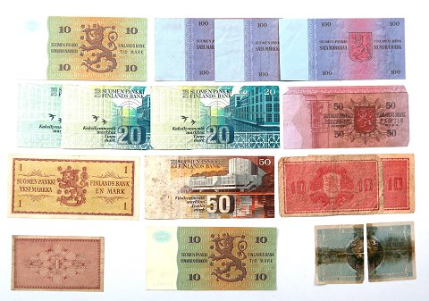 Finland, samling sedler 1, 5, 10, 20, 50 og 100 Markkaa (15)