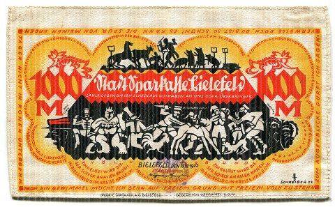 Tyskland, Stadtsparkasse Bielefeld, 1000 Mark stofpenge 1922 - ucirkuleret