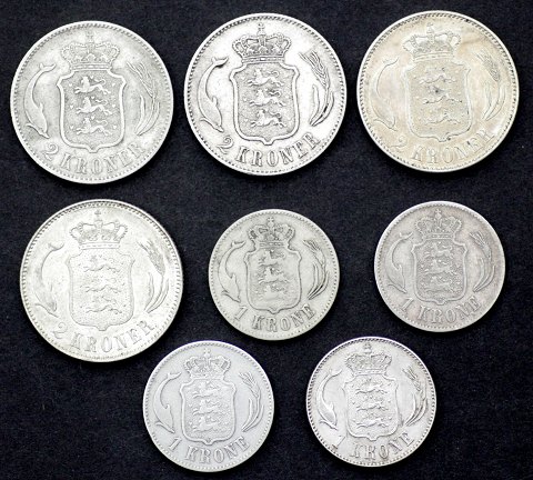 Christian IX / Christian X, 1 kr. og 2 kr. sølv (8)