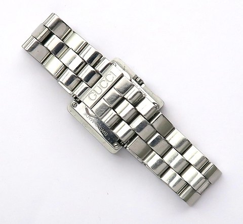 Gucci damearmbåndsur, ref. nr. 2600J i urkasse og med lænke af blankpoleret stål. Rektangulær skive bag safirglas uden stregindikation. Quartzværk. Logo urkasse 27 x 25 mm.