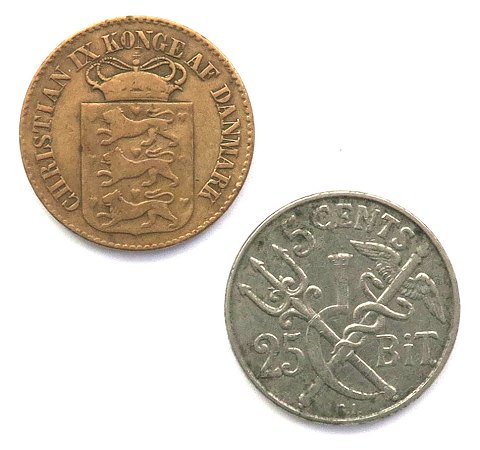 Dansk Vestindien, Christian IX, 1 Cent, 1868, og 5 Cents/25 Bit, 1905