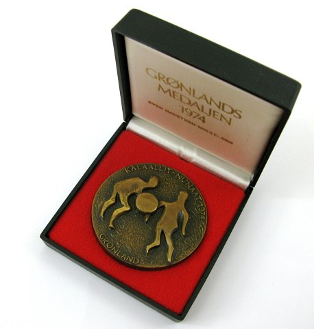 Stor Grønlands medaille fra 1974, diameter 70mm. design Sven Havsten -Mikkelsen. Udgivet af Anders Nyborg, Nordisk Kunstmedalje.
