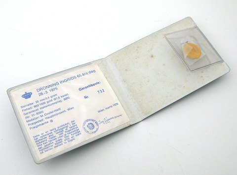 Mindedukat, Dronning Ingrids 65 års fødselsdag, 28 -3 - 1975 - 3,5 gr GULD .900