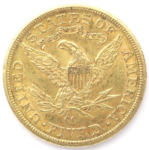 USA, 5 dollar, Coronet Head, 1893 CC, guld, KM# 101