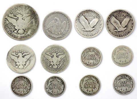 USA, lot mønter af sølv, Half Dollar, Qarter Dollar og One Dime (12)