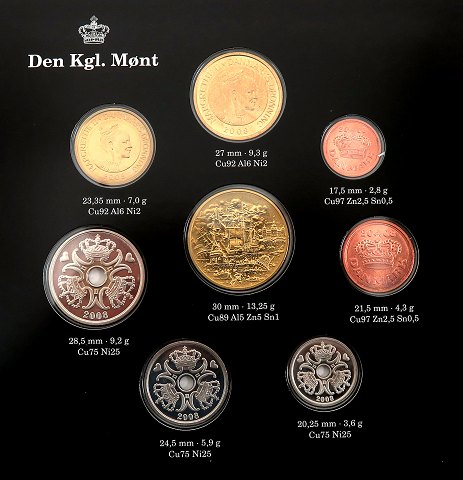 Møntsættet indeholder 25 og 50 øre samt 1, 2, 5, 10 og 20 kr. fra 2008. Desuden indeholder sættet årets medalje, skabt af Jeremias Hercules, der var stempelskærer (medaljør) ved Mønten I København, til minde om slaget ved Kronborg. I originalt ubrudt etui fra Den Kgl. Mønt.