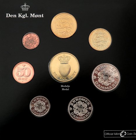 Møntsættet indeholder: 25 og 50 øre, 1 kr., 2 kr., 5 kr., 10 kr. og 20 kr. samt årets møntsætmedalje, som er en kopi af Det Kgl. Danske Geografiske Selskabs Galathea-medalje, der blev indstiftet 28. april 1916. I originalt ubrudt etui fra Den Kgl. Mønt.