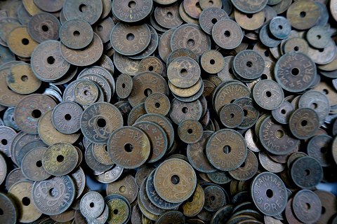 Christian X, 1 øre, 2 øre og 5 øre bronze 1927 ~1940 - ca. 9,6 kg.
