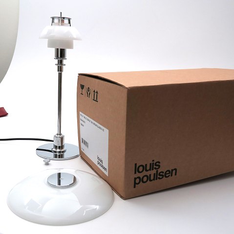Poul Henningsen, ny PH 2/1 med fod og stamme af metal og skærme af opalineglas. Lampen er fabriksny og leveres i originalemballagen med ID nummer. H. 35,5 cm.