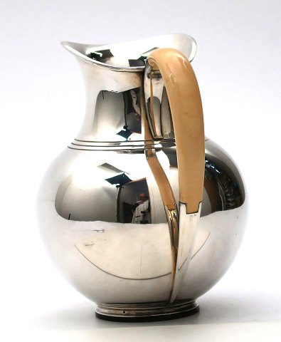 Frantz Hingelberg Aarhus, kande med balusterformet korpus på rundt fodstykke med hank af ben. H. 17,5 cm., vægt ca. 496 gr.