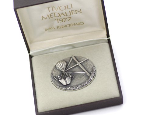 Tivoli medaljen 1977 af sterling sølv, udformet af Inka Klinckhard. Diameter 50 mm., vægt ca. 84 gr.