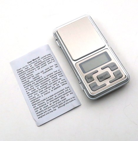 Vægten kan måle op til 300 gr. med en 0,01 gr. graduering. Vægens mål er 6 x 12 x 2 cm.
