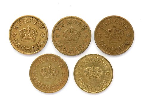 Christian X, ½ kr. 2x 1924, 1925, 1926 og 1940 - H. 22A, 22B (5)