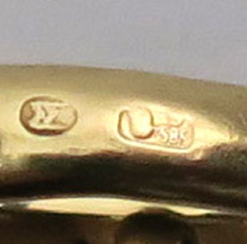 Græsk ring af 14 kt. guld, prydet med klare, facetterede sten