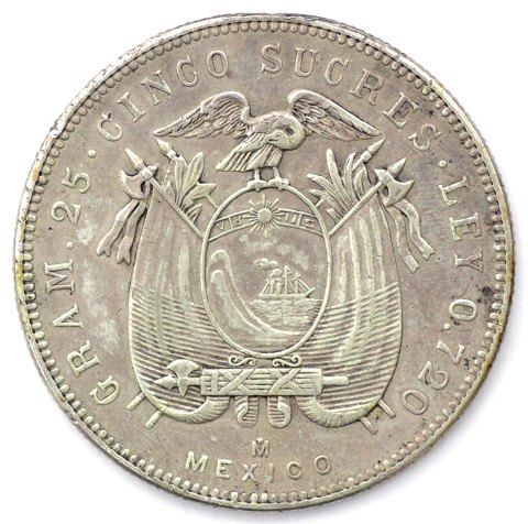 Equador, 5 sucres 1943 M sølv - KM 79