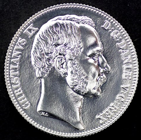 Medalje af finsølv, avers præget med portræt af Christian IX, revers Fregatten Jylland. Diameter 37 mm.