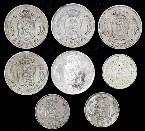 Christian IX / Christian X, 1 kr. og 2 kr. sølv (8)