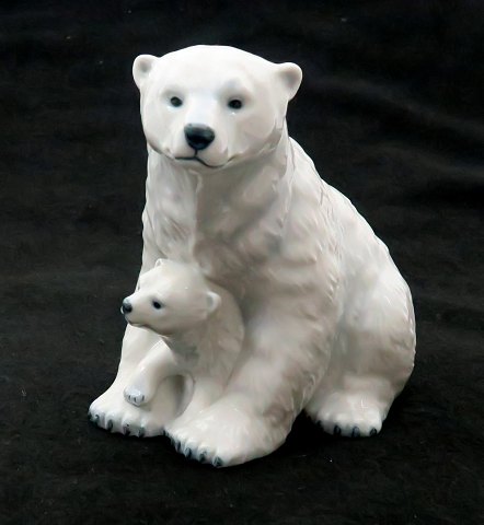 Royal Copenhagen figur i form af isbjørn med unge, H. 12 cm. 1. sortering.
