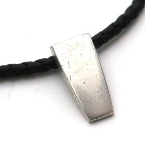 Georg Jensen halssmykke med kæde af flettet lædersnøre, lukke og vedhæng af sterling sølv, samlet vægt ca. 10 gr.