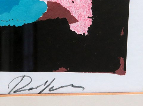 Robert Jacobsen (1912-1993) Litografi fra *Tokyo* serien XIV/XXX, indrammet med passepartout bag glas, motiv 53 x 38 cm., ramme 67 x 57 cm.