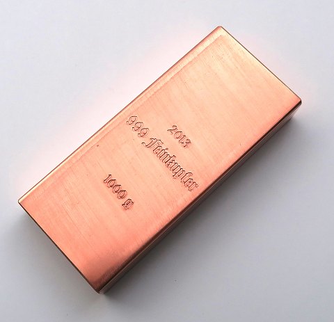 Tysk kobberbarre af 1000gr. finkobber (.999)n, stemplet 2013