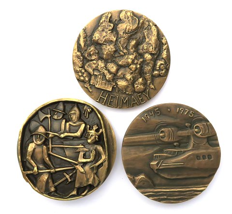 Islands medaljen 1973, 1974 og 1975 af bronze. Hver diameter ca. 70 mm., vægt pr. stk. ca. 250 – 270 gram. Udgivet af Anders Nyborg A/S. Originale opbevaringsæsker og messingholdere medfølger.