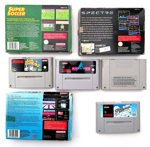 Nintendo SNES spil *Pilotwings, Super Soccer, Spectre* (3)