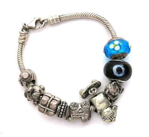 Pandora armlænke af sølv med 8 charms og 2 trollbeads