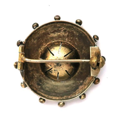 Broche af forgyldt metal med facetsleben sten