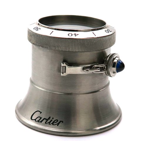 Cartier juvelér diamantlup af ædelstål SIHH 98, prydet med mørkeblå pasha safir. Diameter 40 mm.