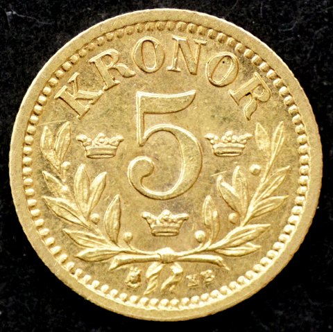 Sverige, Oscar II, 5 kr., 1886 EB, guld, 2,24 gr., .900, KM # 756