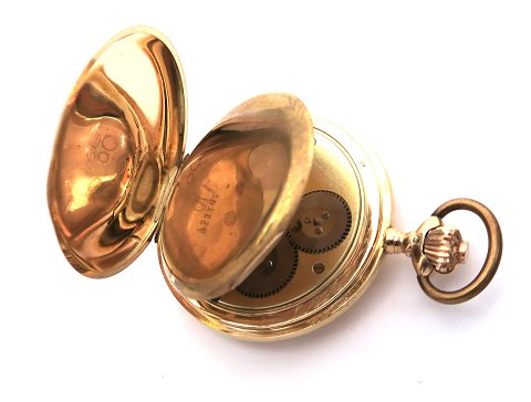 Dobbeltkapslet lommeur fra IWC - international Watch Company, Schaffhausen Schweiz, af 14 kt. guld. Hvid skive med arabertal og separat sekundviser. Inderkapsel af metal. IWC urværk. Urkasse diameter 52 mm., vægt i alt 96,5 gr.