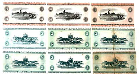 Danmark, 5 kr.: 1954 A3, 1957 B5, 1958 B7, 1958 B9, 1959 C1, 1960 C3. samt 10 kr. 1966 K0. 2x 1966 K1.
