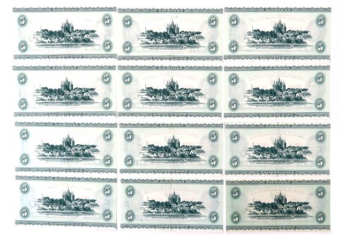 Samling bestående af 5 kr. 1960 C3 og C4 samt 10x 5 kr. i nr.-rækkefølge, cirkulerede, dog med en ganske let lodret midterfold, en seddel er foldet om de øvrige 9 sedler. Serie C3601B nr. 6919671 – 6919680. Desuden C3601B nr. 6919693 samt C4607E nr. 1689834